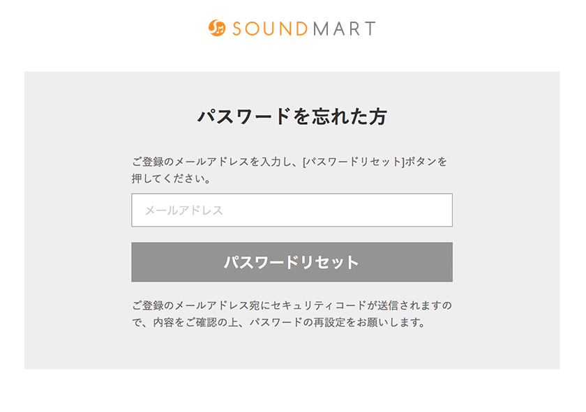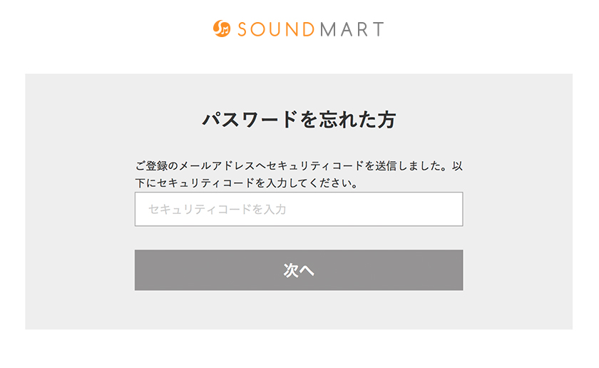 ご登録のメールアドレス宛にセキュリティコードが送信されますので、内容をご確認の上、パスワードの再設定をお願いします。
