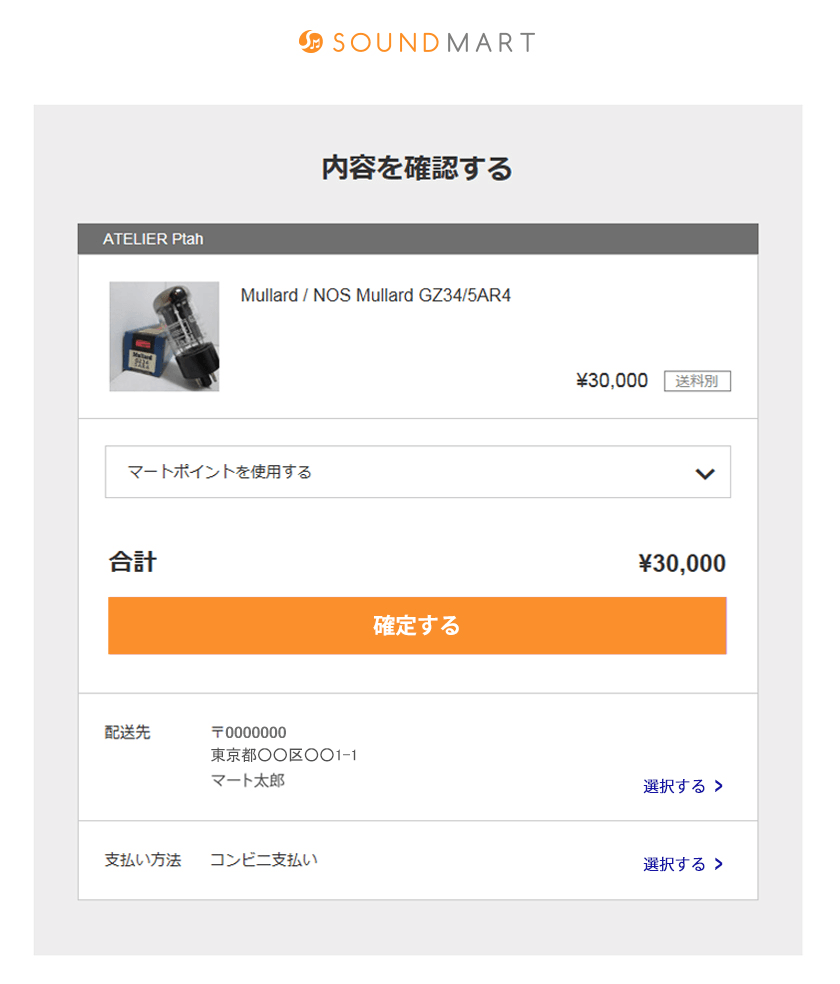 配送先を確認し、支払い方法を選んで購入手続き完了です。