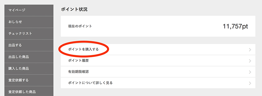 - 「ポイントを購入する」を選びます。