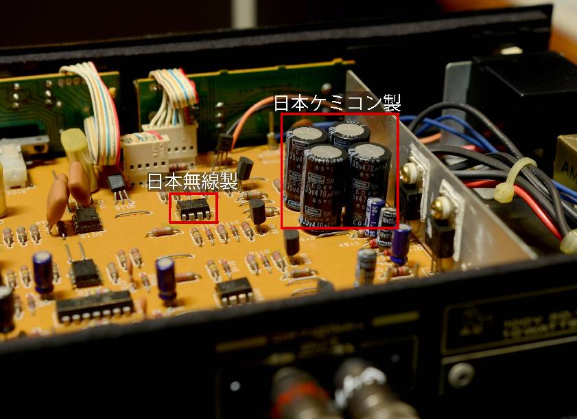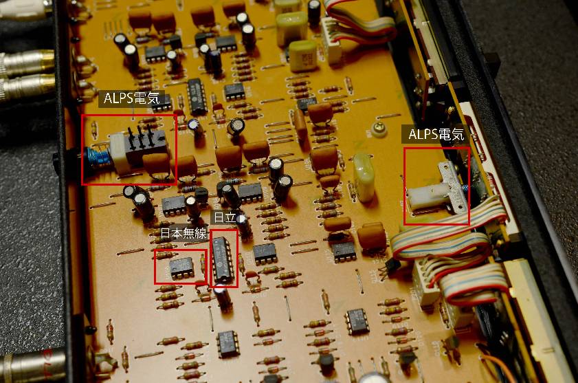 プラスネジで止められたカバーを取り外し驚いたのが日本製パーツの多さ。昔、日本製のビデオデッキを空けたときの光景を思い出しました。それもそのはず、この年代のdbxは日本製だったのです。しっかりとした作りこみには感動です。