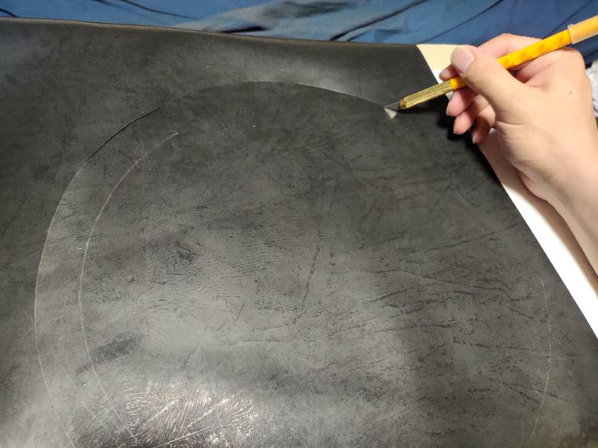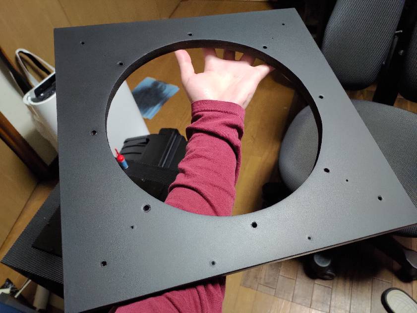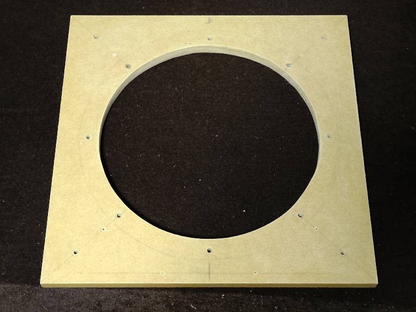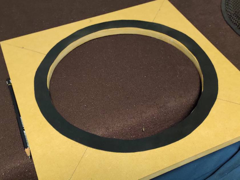 MDF材で前面バッフルを作りました。ガスケットは0.5mmのゴムシートで作っていきます。