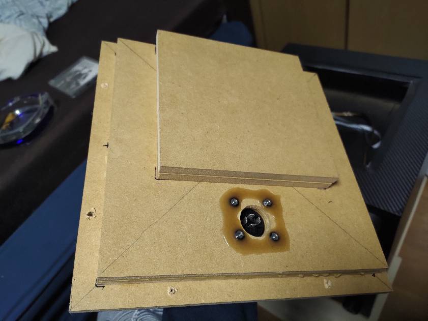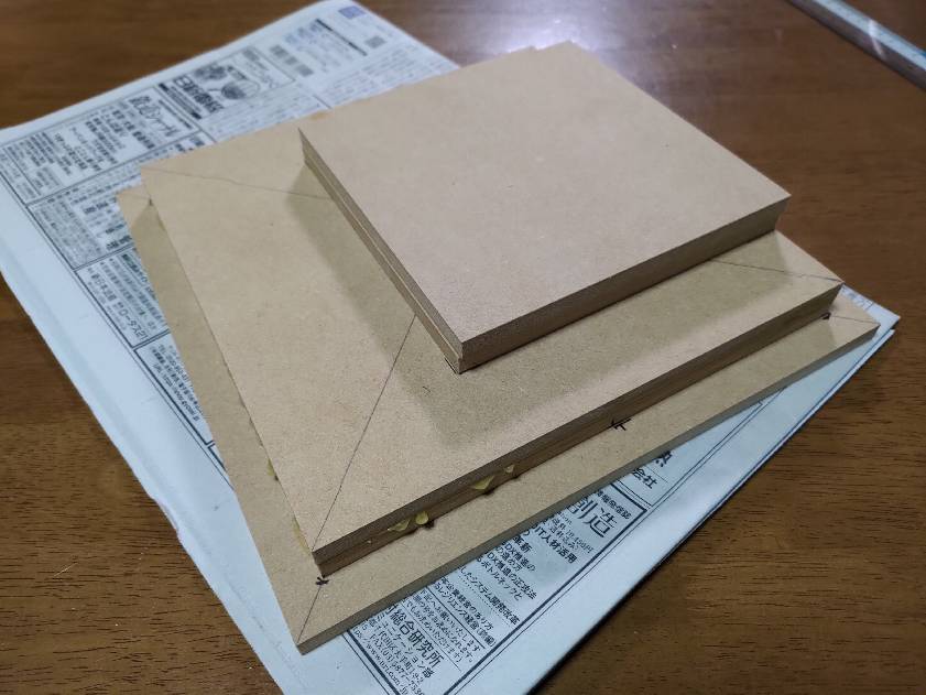 MDFはネジにすると穴がバカになってしまうきらいがあるのでボルト+ナットにしました。