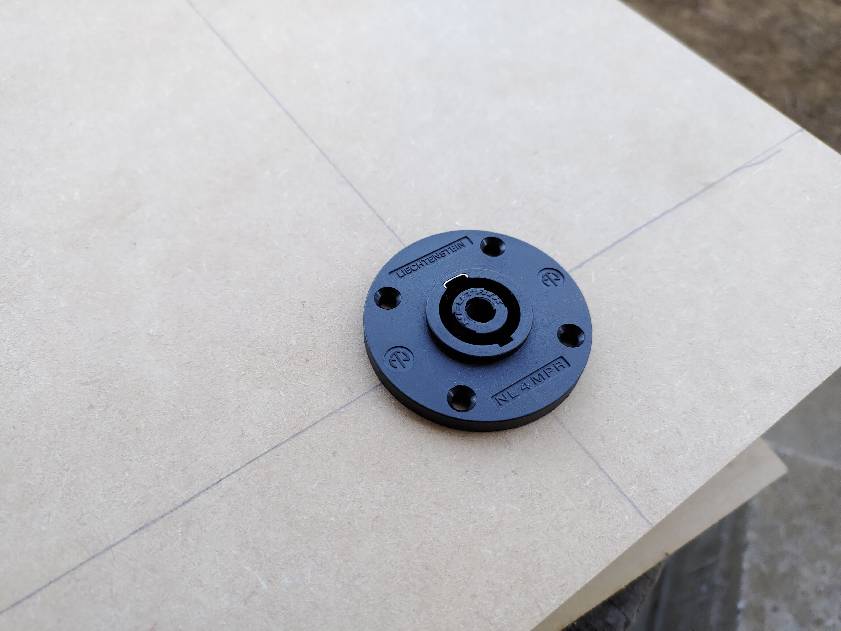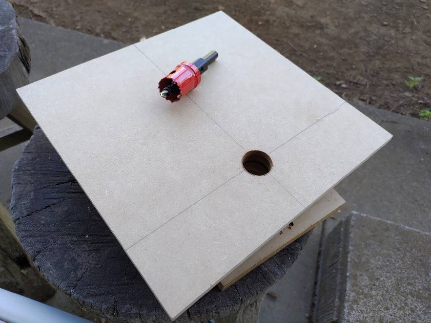 コネクタ用の穴をホールソーを使って空けます。