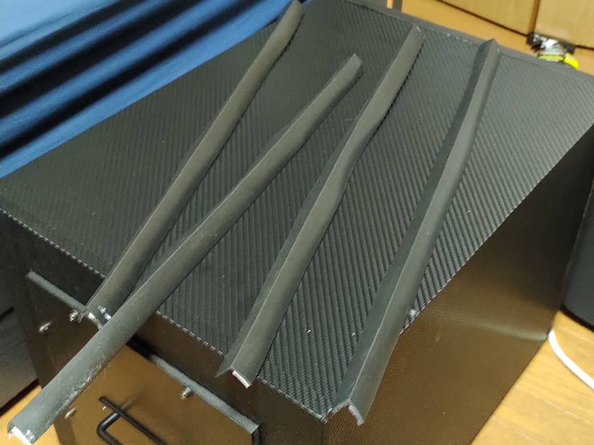 角の保護用にL型ゴムシートを貼り付けました。