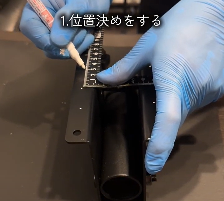 等間隔にねじ穴をあける位置をマークしていきます。