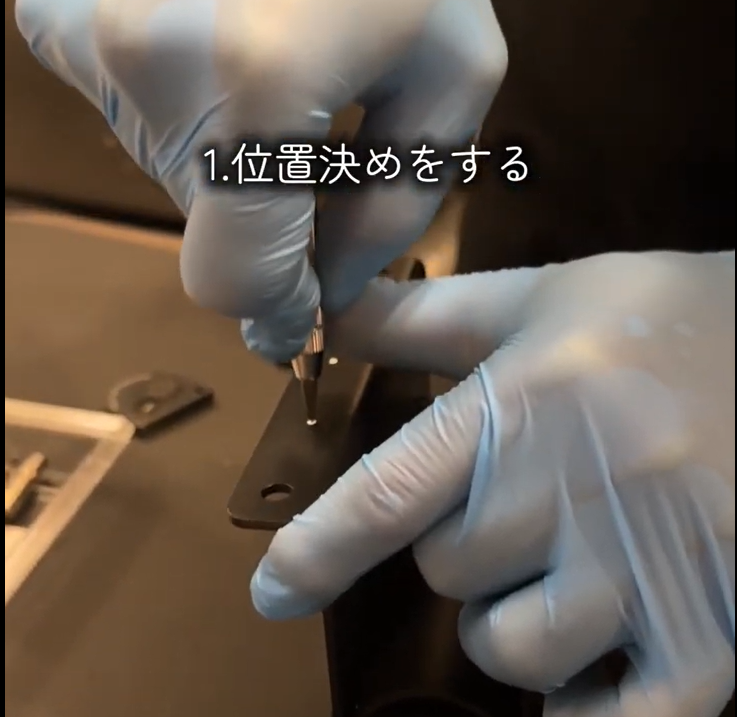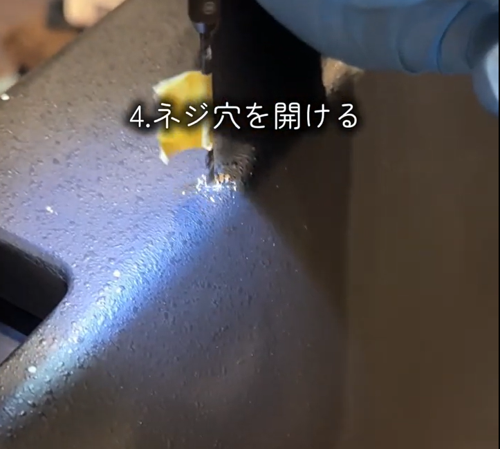 ドリルで穴を開けます。元々空いていた穴と同じくらいのドリルを使いました。