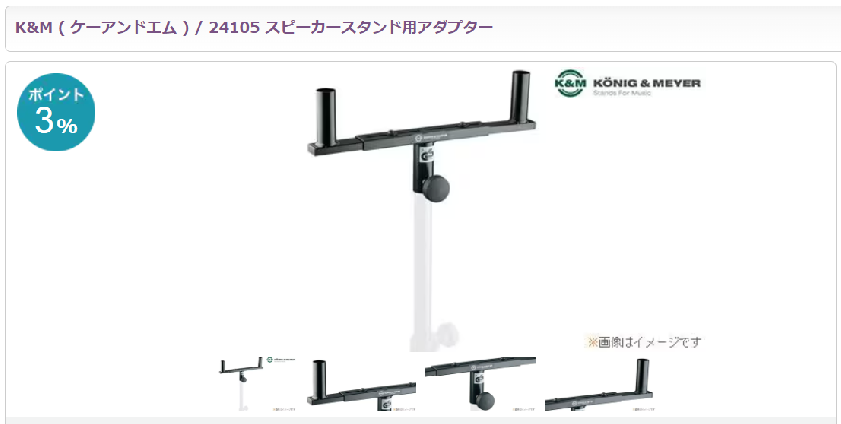 今回は小型のスピーカーだったので、K&M ( ケーアンドエム ) / 24105 スピーカースタンド用アダプターを使って、ダブルマウントにしました!