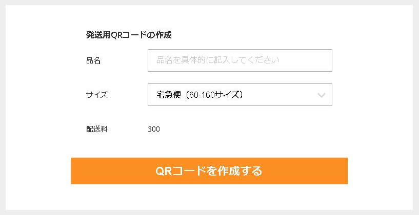 - 商品のサイズを確認し、具体的な品名を入力し、「QRコードを作成する」を押します。