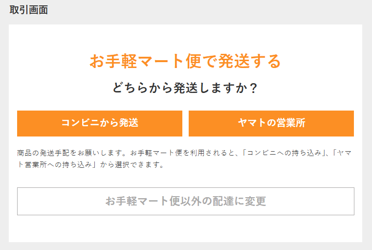 - 商品が売れたら、取引画面において以下の中から発送方法を選びます。