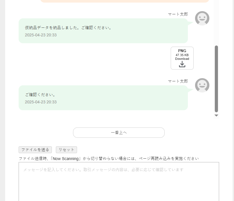 - 仮納品のファイル内容を確認してください。内容を確認したら最終納品の依頼ができます。