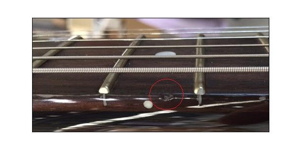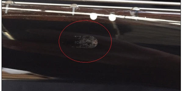 ※ 6弦側の指板サイド9F付近に打痕、6弦側ネック12F付近塗膜下に塗装の不良