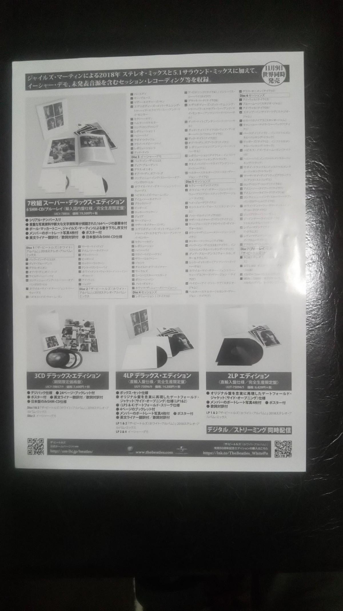 ユニバーサルミュージック / ザ・ビートルズ ホワイトアルバム 50周年盤 告知チラシ