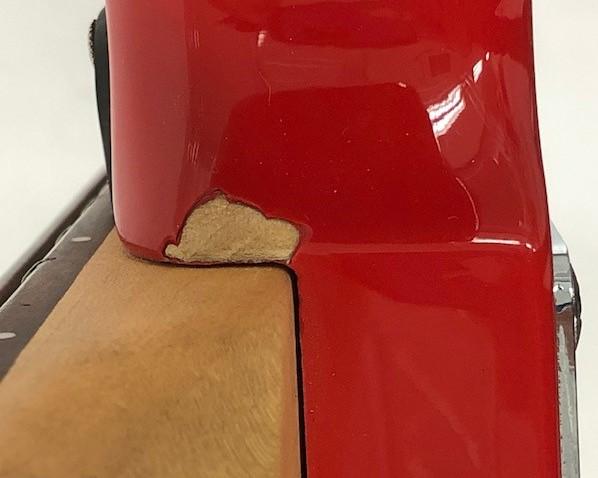 3.ネックとボディのつなぎ目の塗装が大きく欠けています(写真3枚目)