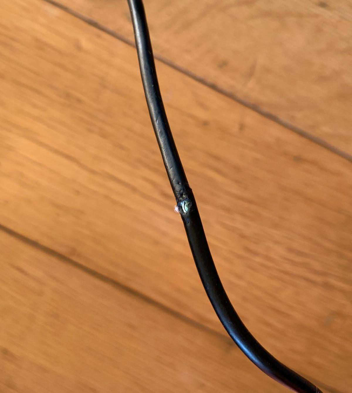 電源アダプターのケーブル一部分に皮膜の破れがあります。画像をご確認ください。