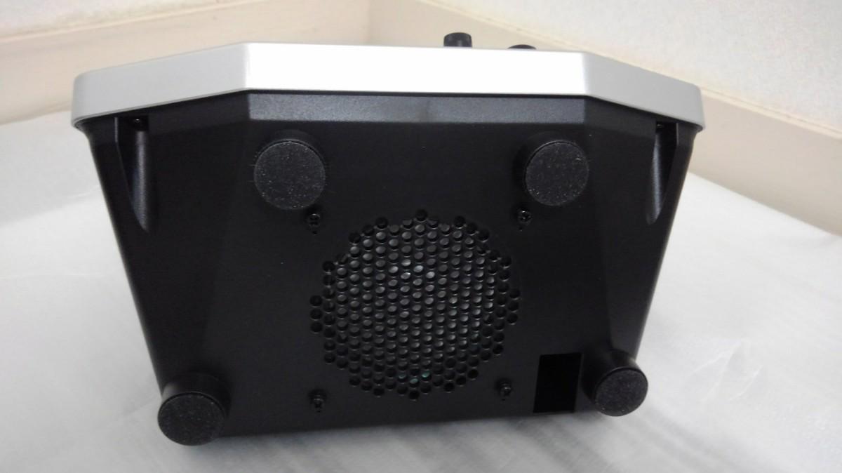 で、音の方はどうかというと、サラウンド仕様なのでとても音質はいいですね。底面にウーハーと呼ばれる低音が出るスピーカーも付いてるので、低音もしっかりでてきます。