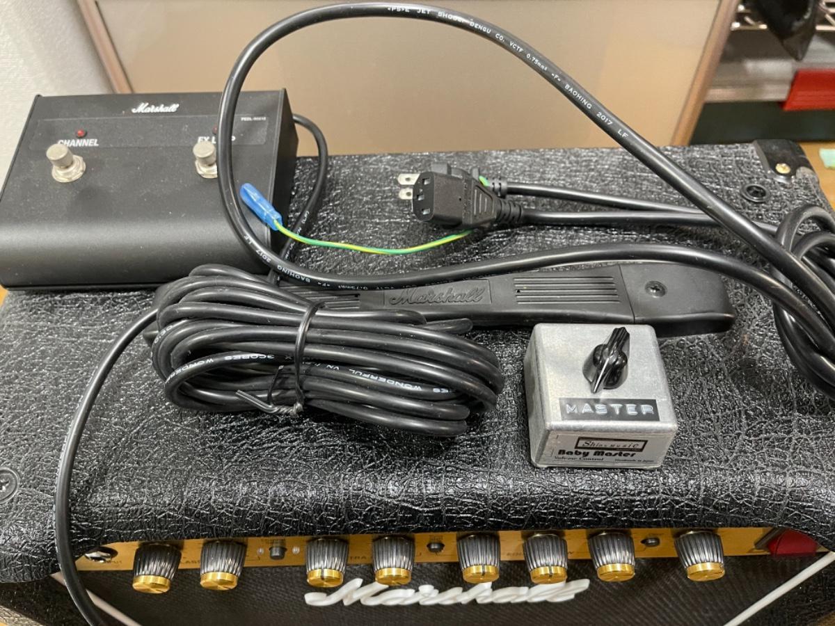 外箱の純正品はないのですが、付属のフットスイッチ、電源ケーブルはございますのでおつけします。また、ボリューム調整がシビアになる傾向があるので、センドリターンに噛ませるボリューム(baby master)を同梱します。これはたしか6000円ほどでの購入だったかと思います。気持ちばかりですがお納めください。