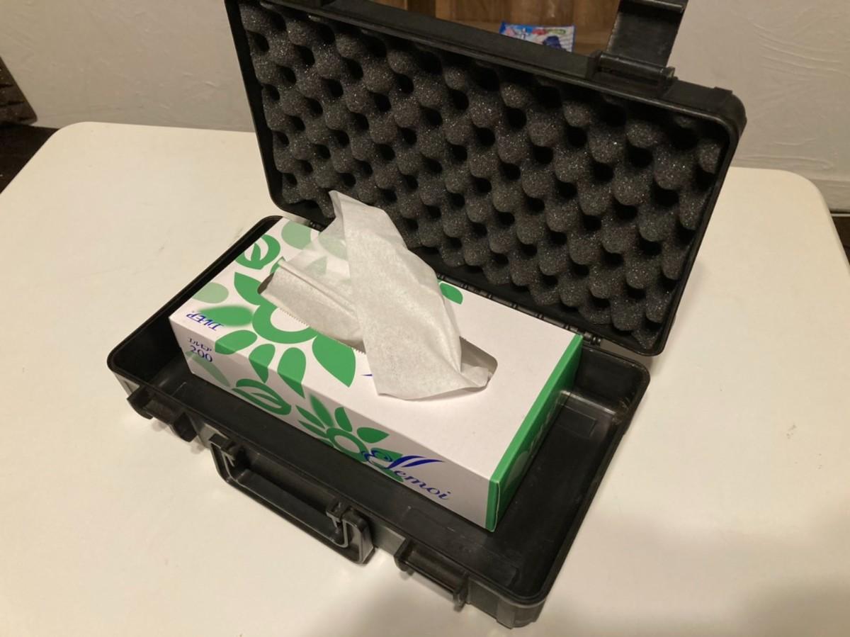大きさはボックスティッシュがすっぽりと入る程度でした。