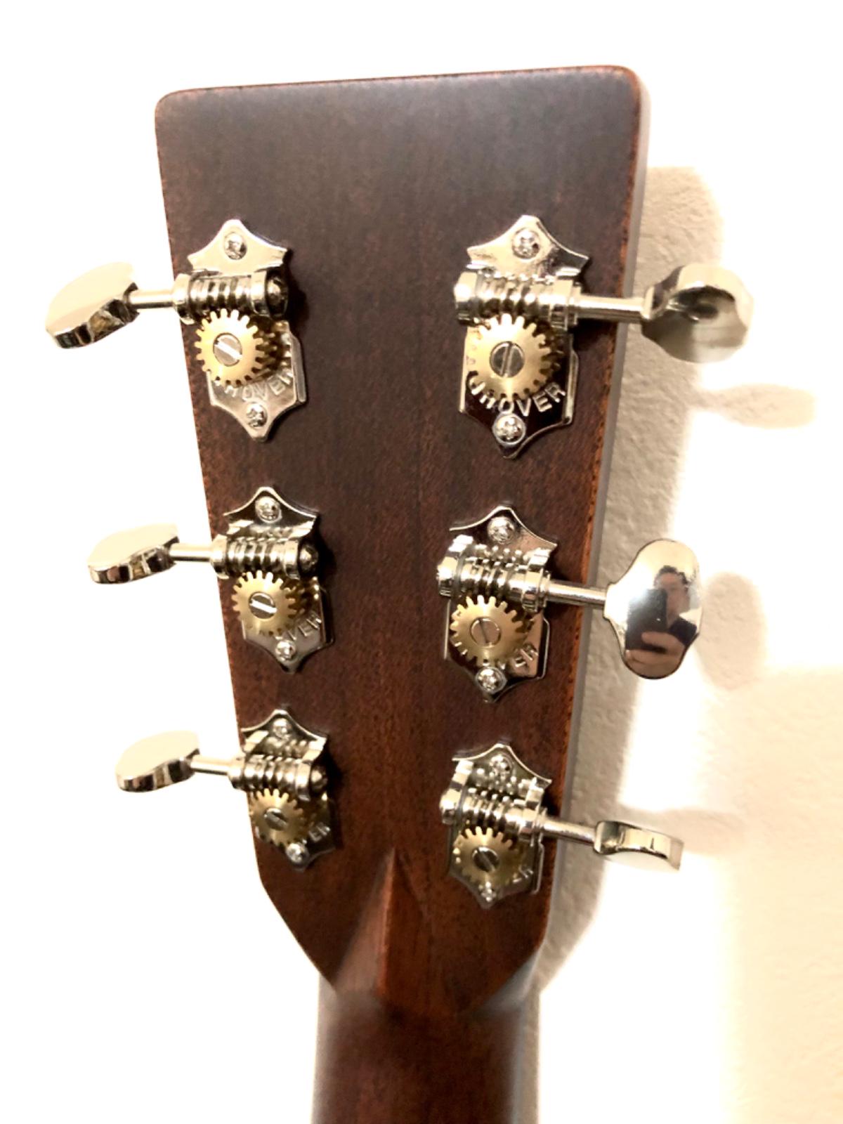Martin D-28Standardは、2017年より仕様変更されて一層魅力が加わった永遠のスタンダードモデルです。以前のモデルからボディトップはエイジングトナーになり、それに合わせてバインディングやヒールキャップなどはホワイトカラーからアンティークホワイトへ変更、ピックガードは定番の黒から鼈甲柄へ一新されました。ヘッドロゴもオールドスタイルに、クローズドペグからバタービーンズ・ボタンのオープンギアチューナー仕様となり、ビンテージの風合いを醸し出しながら現代に合った演奏性の良い仕様となっております。