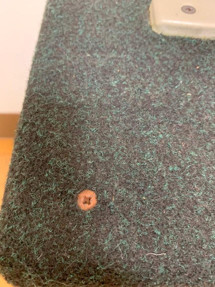 使用感有りますが、目立ったキズ等はありません。外側はカーペット仕様なのでホコリの付着はあります。またキャビネットを止めるネジにサビがあります。