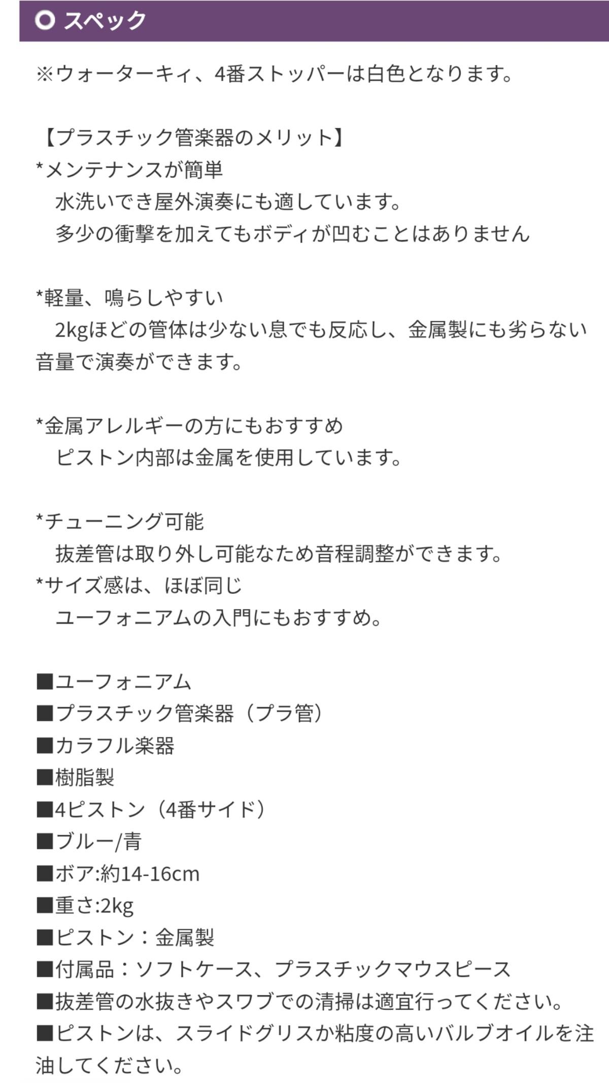 趣味で始めるだけだからと金属製より安価なプラスチック製のユーフォニアムを購入しましたが、数回試奏してみてやはり金属製の楽器への想いが強くなってしまったため出品させていただきます。