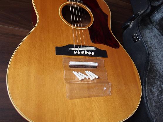 オリジナルケースは、劣化した紙製のソフトシェルケースでしたので処分し、クラシックギター用のハードケースに換えました。その際、ピンのところが少しきついので、クッションを減らしてあります。それ程、頑丈なケースではありません。