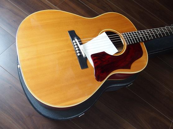 ボディトップはスプルース、サイド・バックはマホガニー。マホガニーネックで、指盤は多分ハカランダ。ナット幅40.5mm。1960年代ギブソンの「ナローネック」と呼ばれるものですが、ナローネックの多くが39mm位なので、ナローネックの中では太めと思います。スケール(弦長)は、24.75インチ(約628mm)の「ギブソンスケール」。弦高は、現在の牛骨サドルを下まで落とした状態で、12フレット6弦2.3mm、1弦1.8mmほど。アジャスタブルサドルなので、好みによって高さを上げられます。わたしは、ボトルネック奏法で使う時には弦高を上たりしていました。ブリッジはプラスチックで、今のところ大きな変形は見られません。軽いプラスチックブリッジの方がボディの鳴りを妨げず、響きが良いとも言われます。