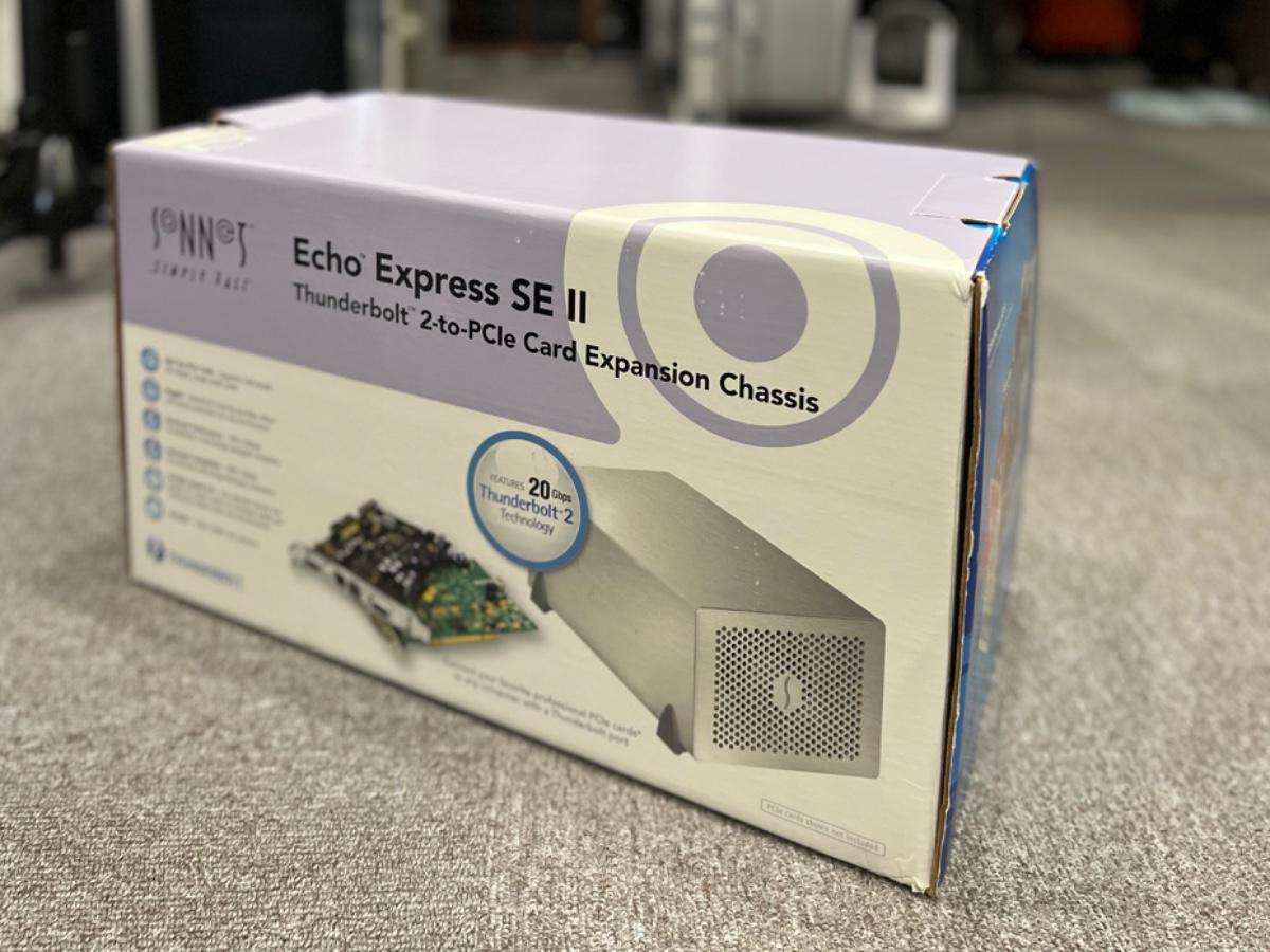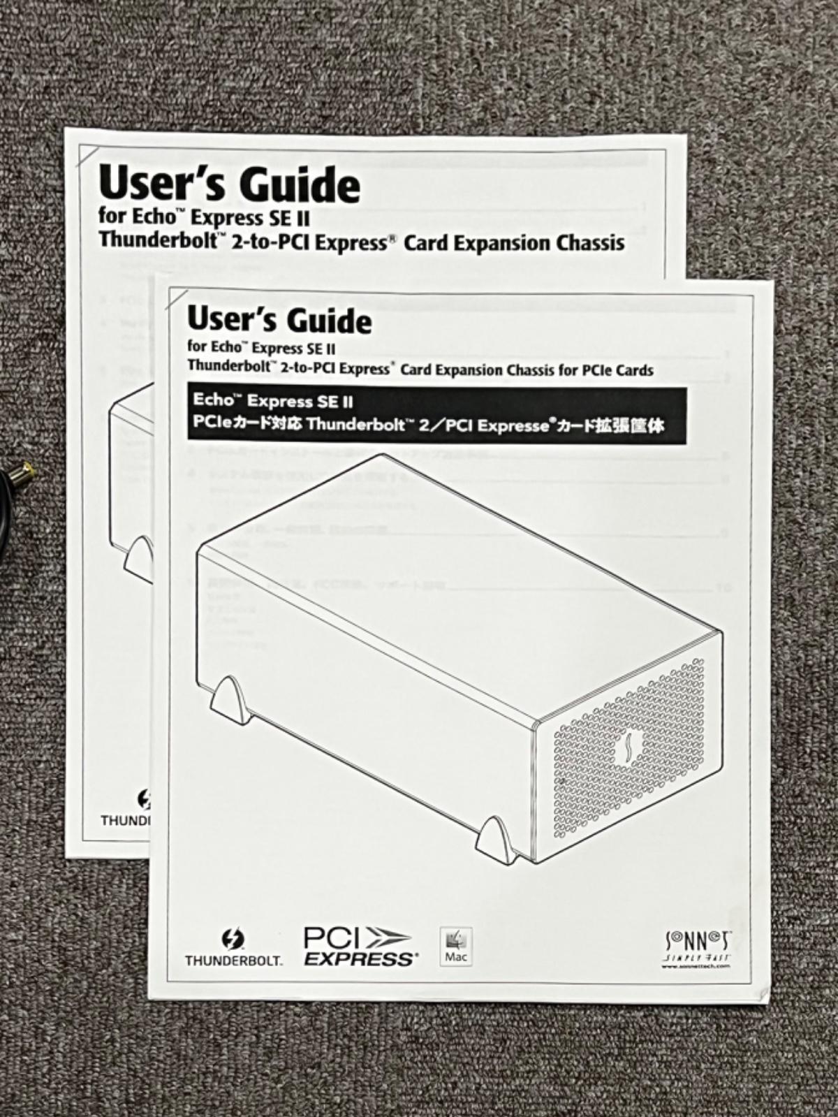 ソネットEcho Express SE II を使用すると、2枚の高性能、専門的な PCIeカード製品をThunderboltポートを搭載する全てのMac®に接続可 能、ビデオキャプチャカード、データプロセッシングカード、デジタル オーディオインターフェースカード、DSPアクセラレータ、FireWire、 RAIDコントローラ、10 Gigabit Ethernet、eSATA等、様々なカード製 品をお使いいただけます。この小型のThunderbolt 2-to-PCIeカード対 応拡張筐体はフルハイト 7.75インチまでのカード(ハーフレングス)シングル幅2枚をインストール可能、ダブル幅の カード(PCIeカード+ドーターカード)は1枚、を含む、現在市場に出回ってい るあらゆるThunderbolt対応済みPCIeカード製品殆ど全てのカードサイ ズをサポートします。Echo Express SE IIの外寸は幅16.5cm、高さ 11.7cm、奥行き27.9cm、そのため設置に場所をとらず、スタジオ内、 ロケ先、デスクトップで、或は編集機器類と共に設置する等、様々な作 業環境にて使用できます。他のEcho Express筐体製品と同様、このSE II モデルは2基のThunderboltポートを搭載、コンピュータの1基のポート からデバイス6台とのデイジーチェーン接続をサポートします。