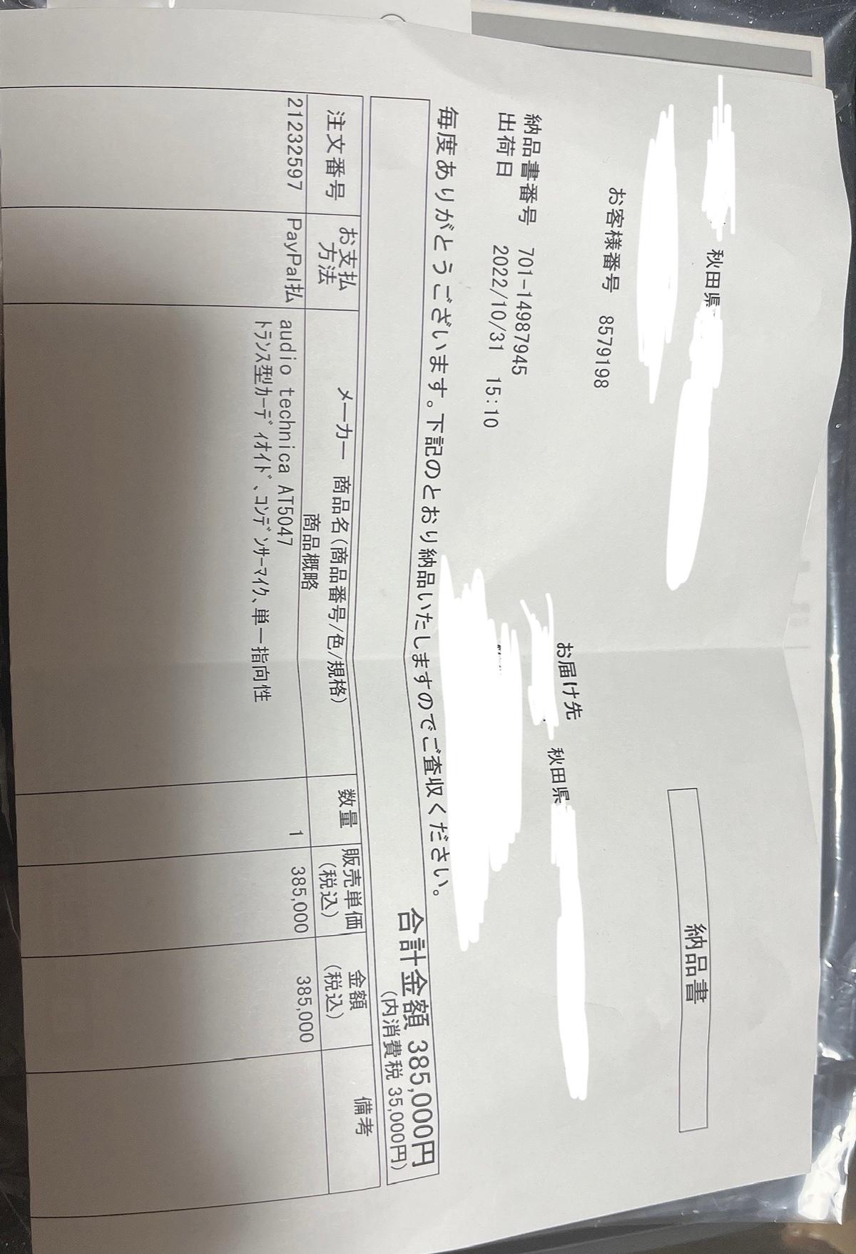 3週間ほど前にサウンドハウスにて購入したものになります。(詳しくは納品書の写真をご確認ください。)