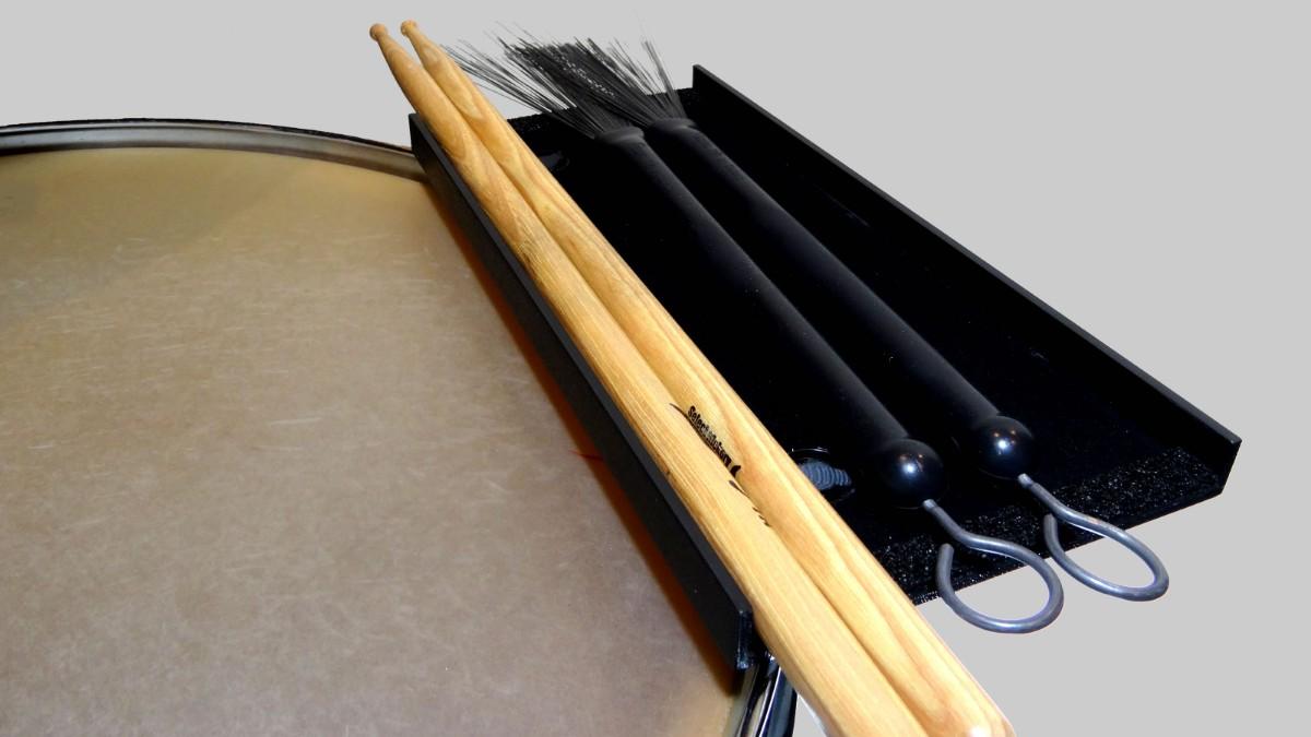 スティック、ブラシ、マレット、メトロノームなどを置いておくのに大変便利です。