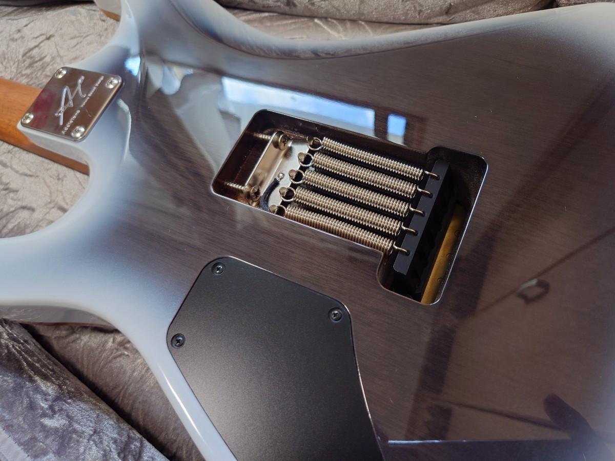 ハードウェアカラーはPRSのハイブリッドハードウェアのようにゴールドとニッケルを組み合わせた色になっております。(ブリッジ、アーム関してはGotohのX-Finishだったと思います。)