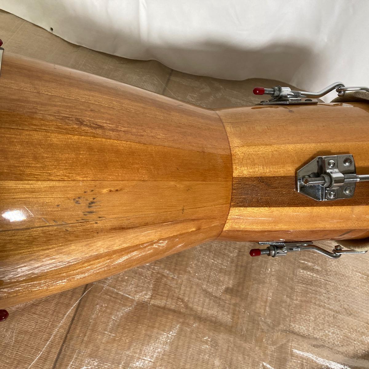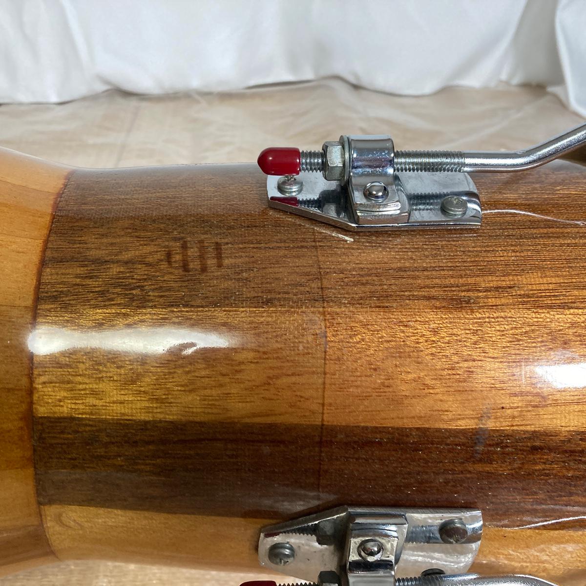 ・打面大の皮、今のところ音的に問題は起こっていませんが、エッジ部分でひび割れが発生しているので、テンションによっては、いつ破れてもおかしくないと思います。打面小は新しい皮に張り替え済み