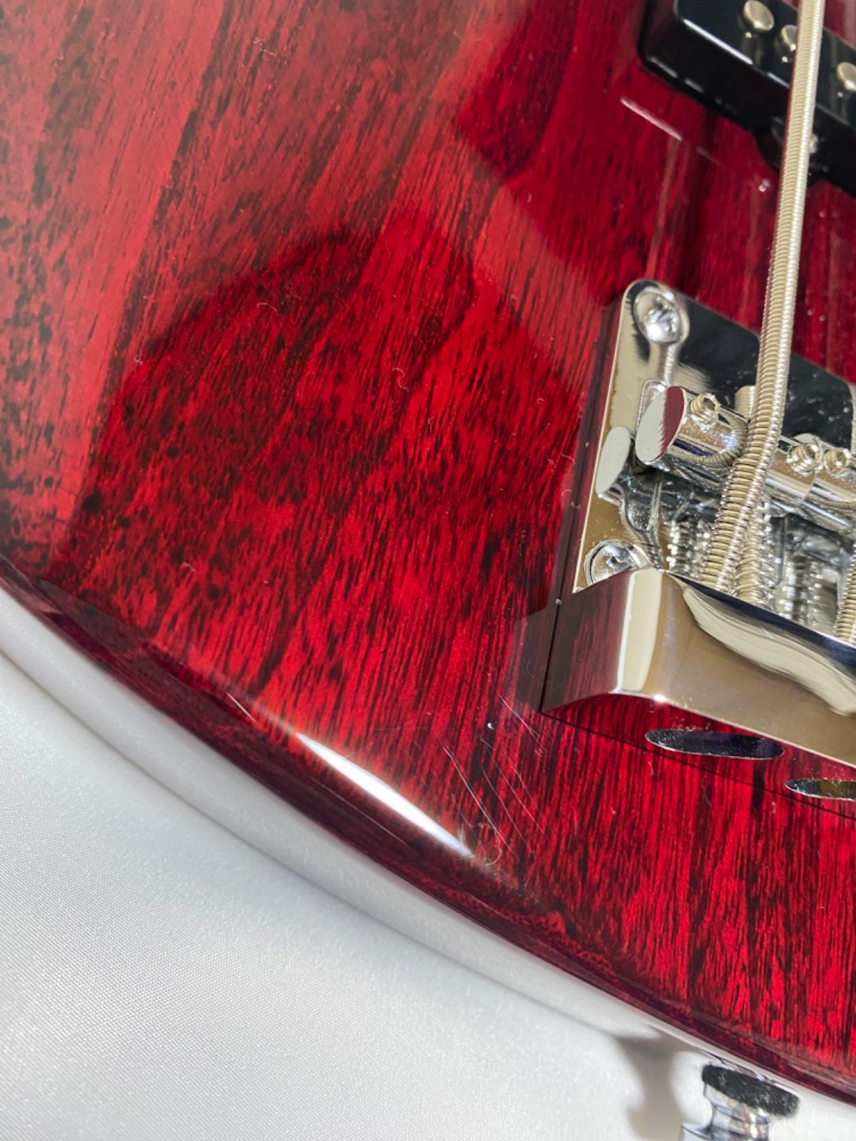 ケース保管によるフレットのくすみ、PU付近とケースを出し入れした際についたと思われるボディ下部のわずかな線傷のみで使用感も少ない状態です。