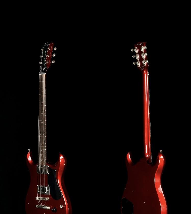 Light Distress-Candy Apple Red FinishMahogany Body & Neck Rosewood Fingerboard 24.75”Scale1 11/16” Nut10”-16” Compound RadiusC Profile - .88” - .98”Lollar Imperial PickupsTonePros TOM Bridge w/Stop Tailpiece Nickel ハードウェアGotoh Kluson チューナー2 ボリューム、1 トーン ノブ3 ウェイ セレクターカスタム ハードシェル ケース