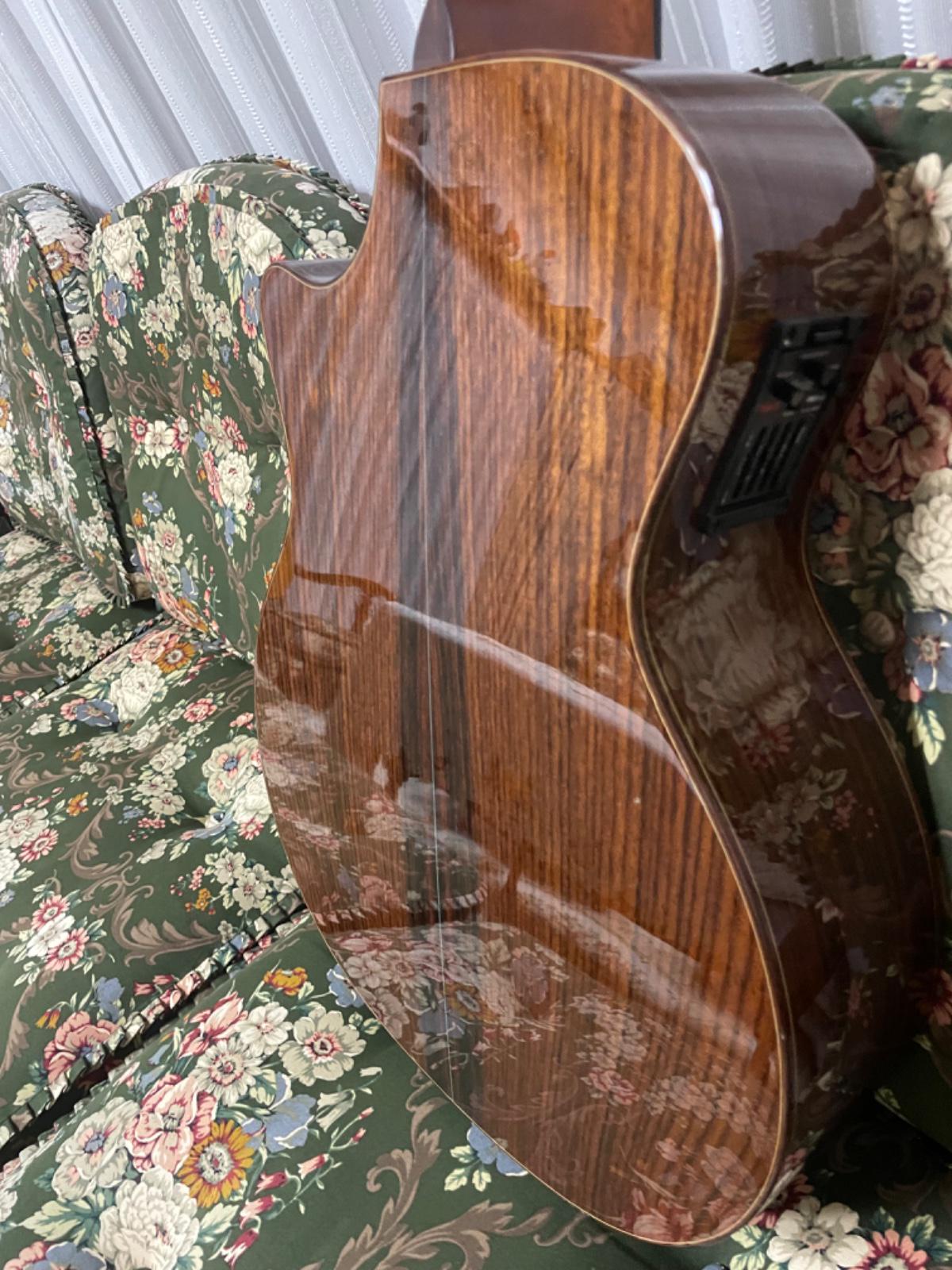 その分太く奥行きのある音色です。フレット数20の14Fジョイントで普通のアコギ感覚で演奏できます。