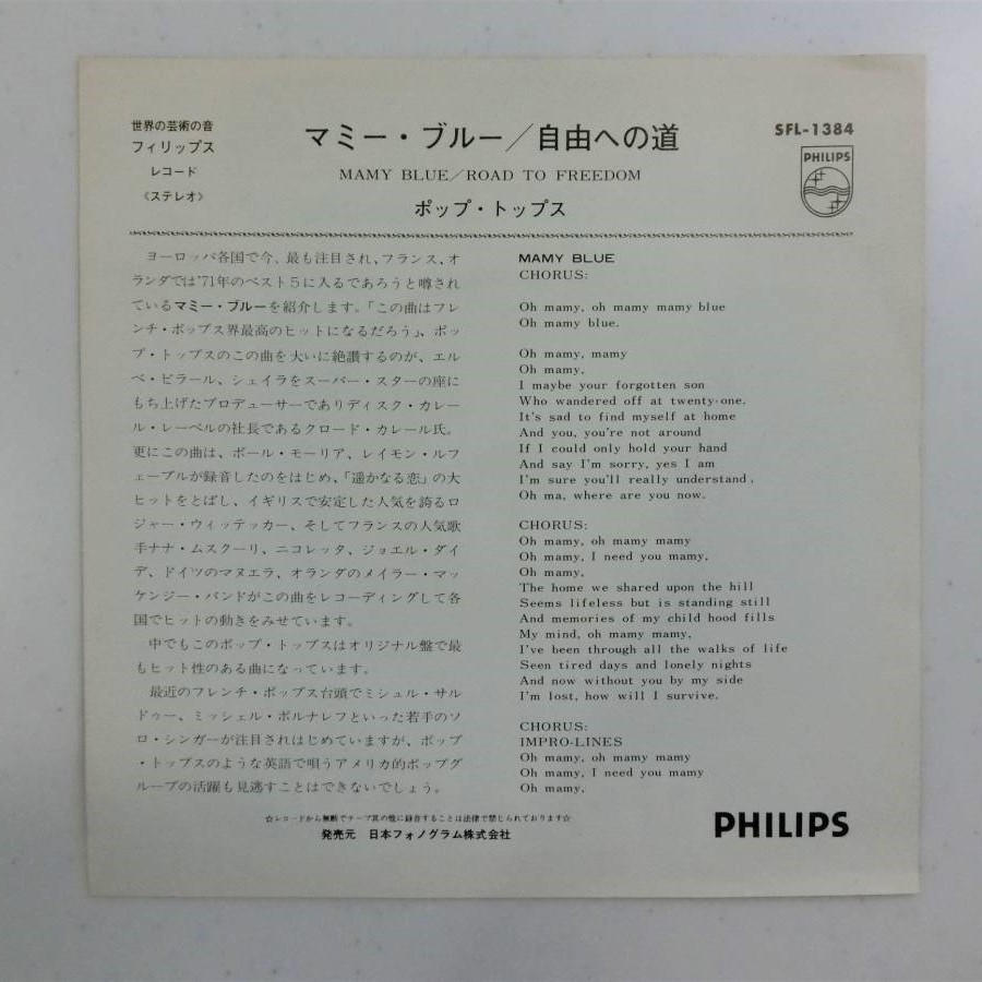 ポップ・トップス / マミー・ブルー/自由への道 1971年 アナログ/シングル