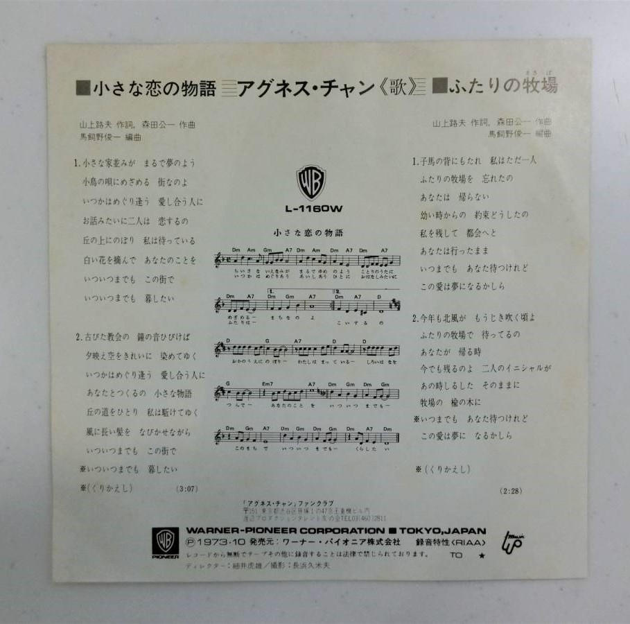 アグネス・チャン / 小さな恋の物語/ふたりの牧場 1973年 アナログ/シングル