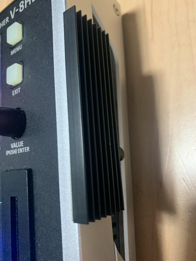 写真のように左右に冷却のための放熱アルミ板を貼ってありますが、これは熱対策でこの機種の寿命をあげるために重要だと思いますのでこのままお使いいただくのをおすすめいたします(この処置をしているので、ほとんど内部の発熱による劣化もないと考えています)。
