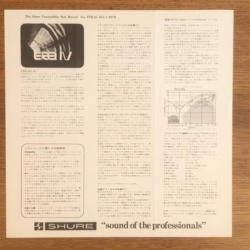 SHURE (シュア) / TRACKABIKITY TEST RECORD FOR STEREO CARTRIDGES TTR115