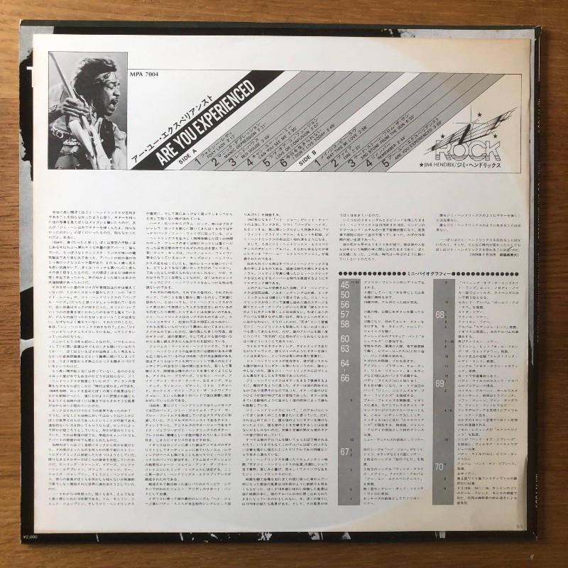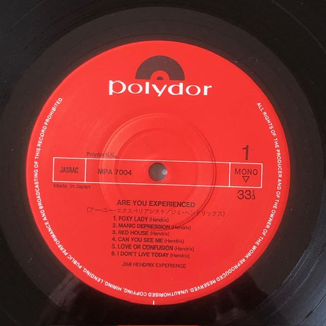 JIMI HENDRIX / LP 日本盤 mono「ARE YOU EXPERIENCED」MPA7004-1980