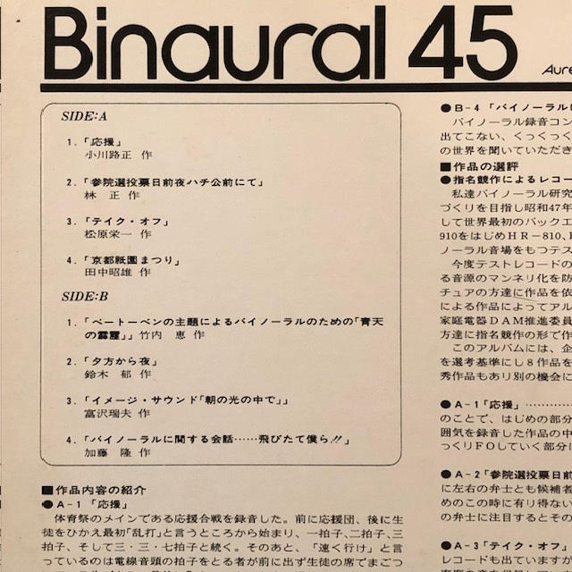 ヘッドホンで聴くことで、音だけで3次元空間と臨場感を得ることができる素晴らしいレコードです。