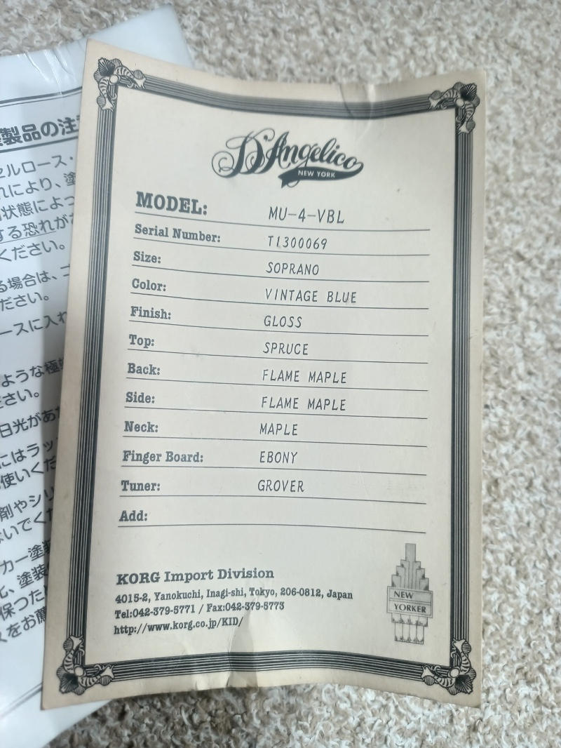 どれを取ってもメーカーの(ディアンジェリコの)こだわりを感じるウクレレです。