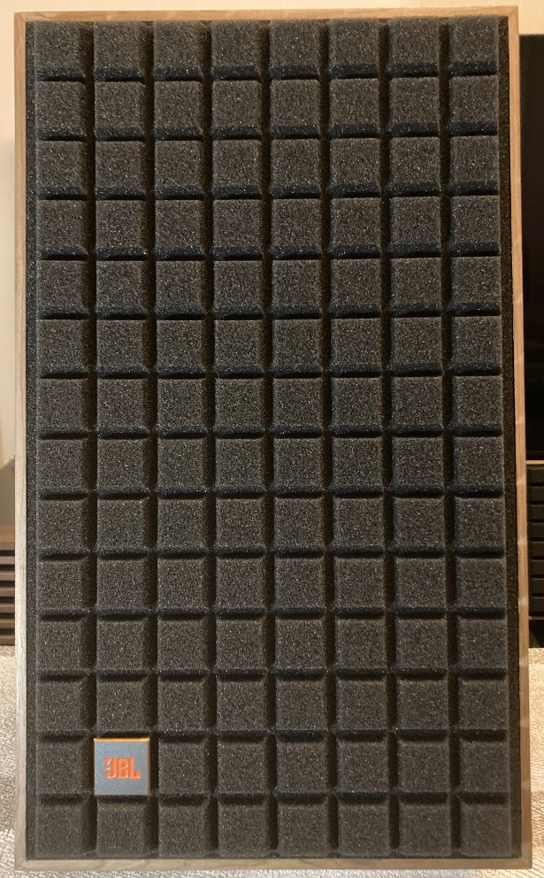 出品している方のスピーカーでは、横向きにした場合、ツイーターは左上、サランネットのJBLマークは右下になるかと思います。