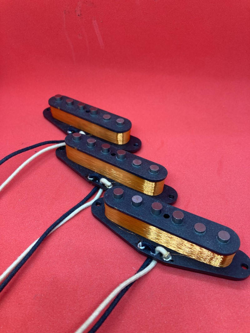 こちらは54年オマージュのストラト用ビンテージタイプシングルコイルPU、フロント、センター、リアの3点セットです。本体のみカバーネジバネはご準備ください。
