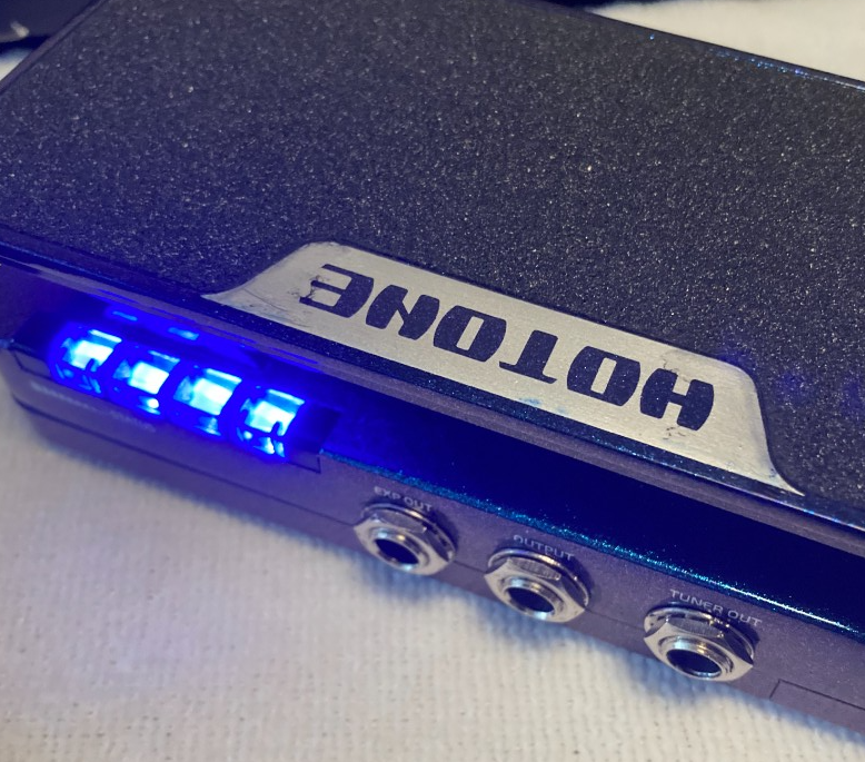 私自身、ペダル面の「HOT TONE」プレート約7cmのところにこの蛍光テープをそれなりに合わせてカットして貼り、文字シールも貼ったりしていました。
