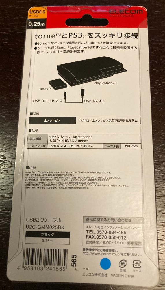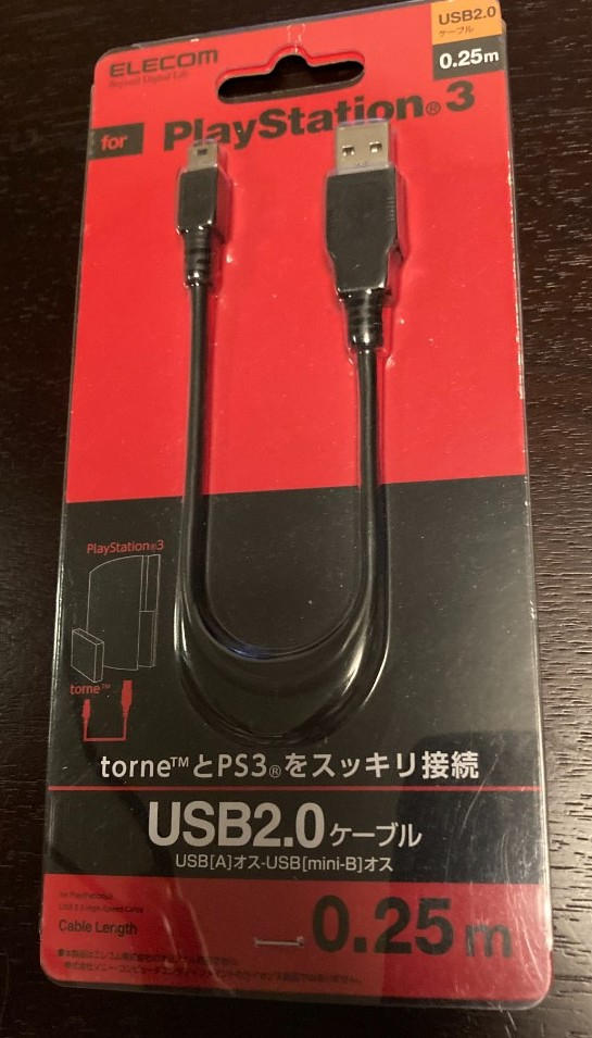 USBケーブル 【miniB】 USB2.0 (USB A オス to miniB オス) torne対応 PlayStation対応 ブラック U2C-GMM025BK (25cm) です。