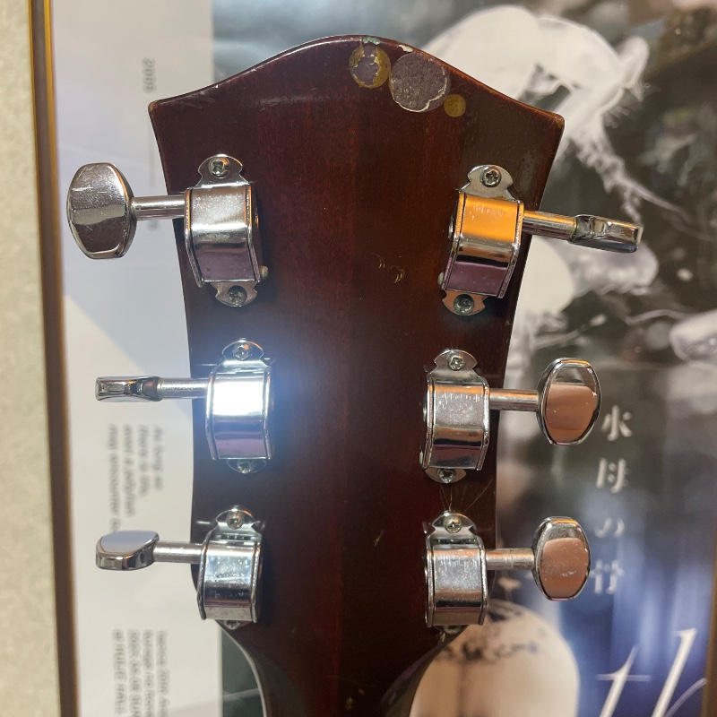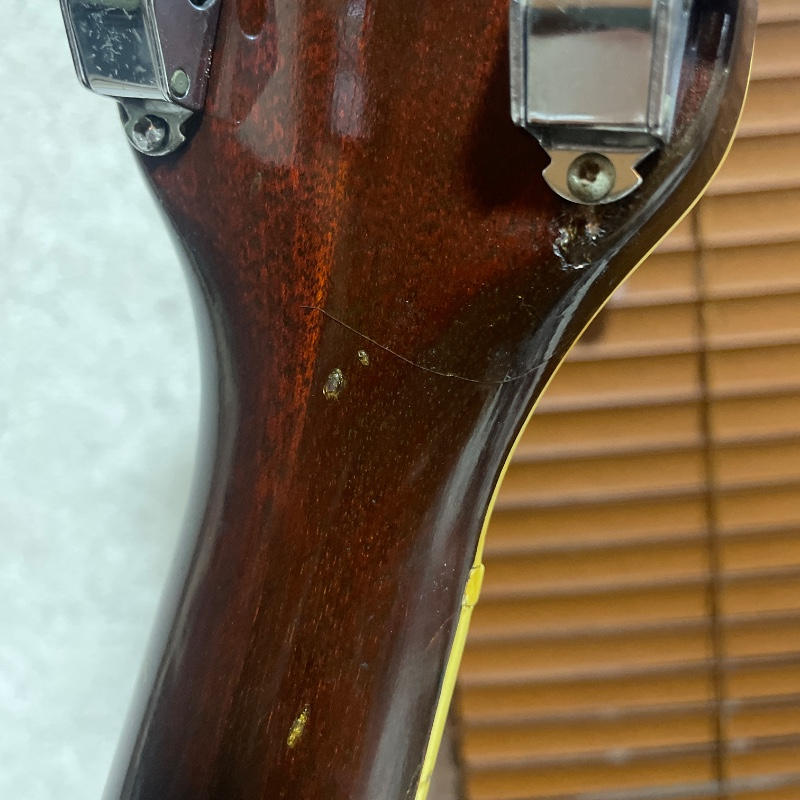 ヘッド裏、6弦ペグ付近にヒビが入っておりますが、店舗で見ていただいた際に塗装ヒビとの事でございました。