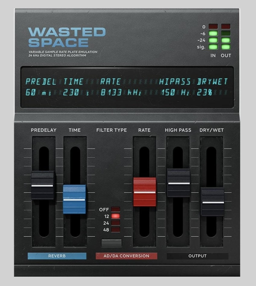 2400 Hz-24000 Hzのサンプル・レートと12dB/24dB/48dBエイリアシング・フィルターにより、デジタル・リバーブ初期のエイリアシング・アーチファクトを意図的に強調が可能。