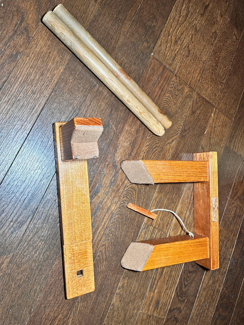 また、お座敷での演奏にも対応できるよう、特注の打ち台(組木台座)をお付けします。組み立て式なので持ち運びや設置も簡単です。