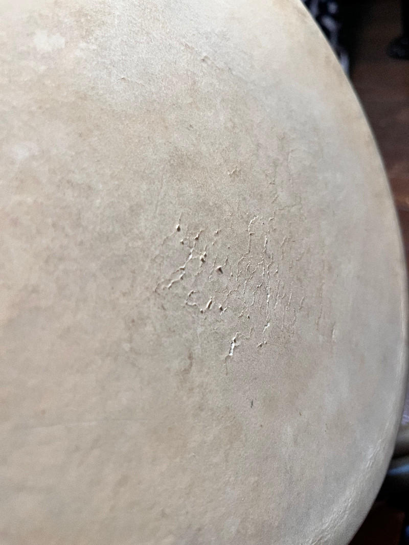 この太鼓の特長は、胴の内面に一級の職人さんによる手彫りが施されている点です。これにより、通常の和太鼓と比べて見た目以上に鳴りが良く、野外での演奏でも和太鼓本来の響きを存分に味わうことができます。