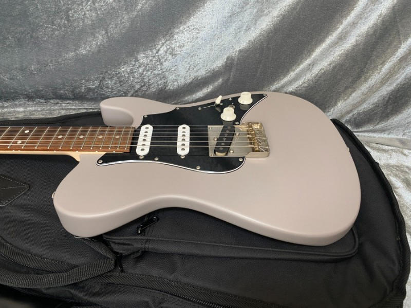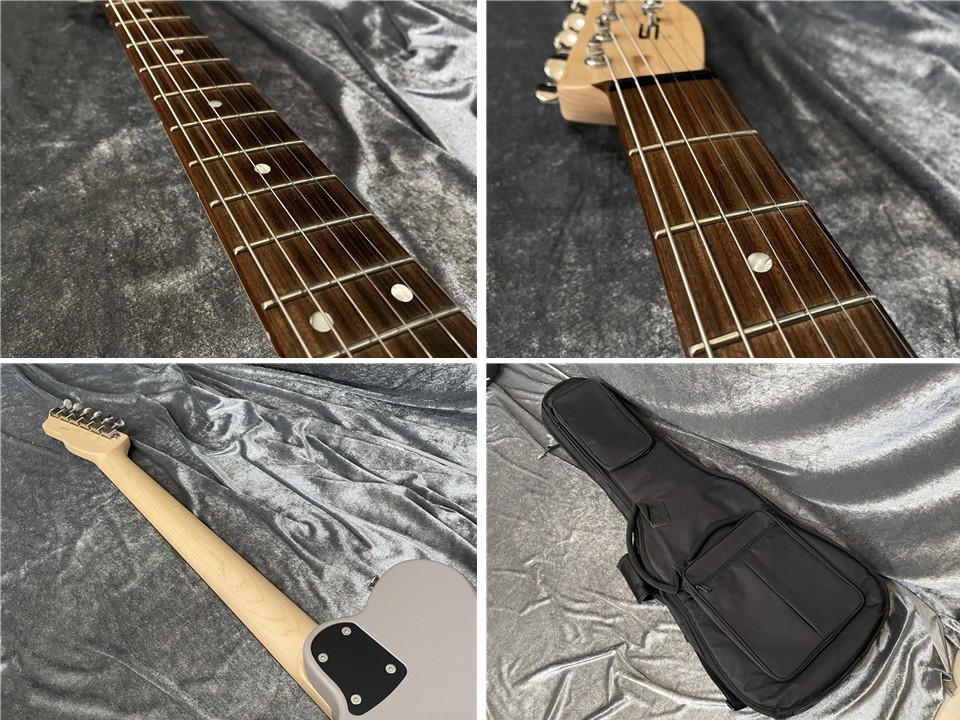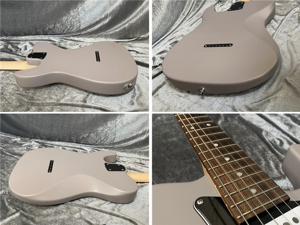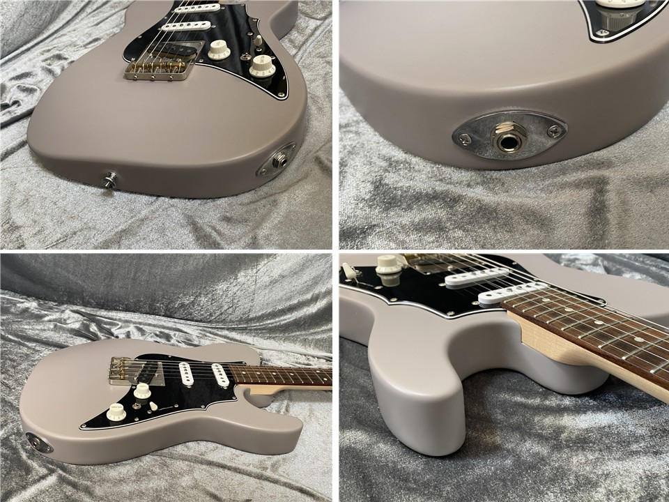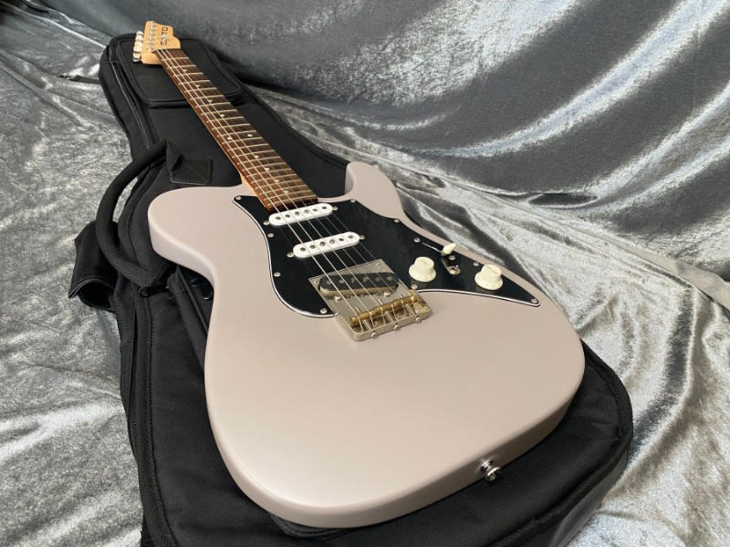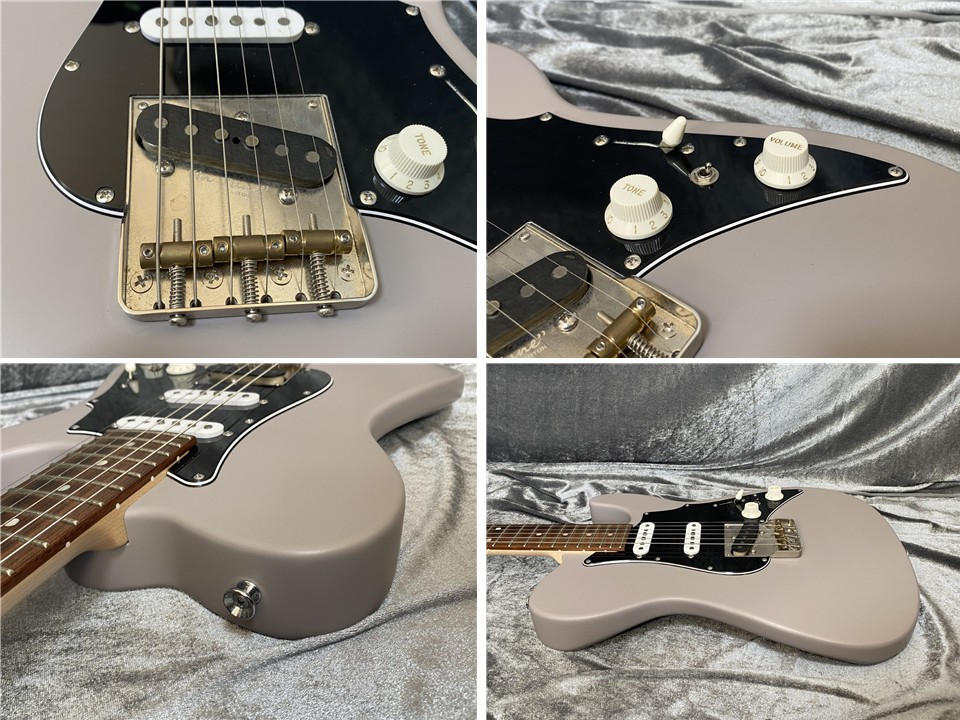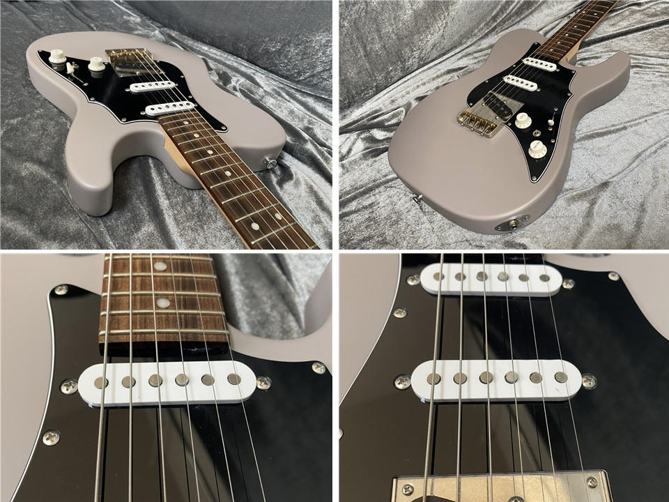 当モデルはテレキャスターシェイプに3つのシングルコイルピックアップを搭載したユニークなスタイル。